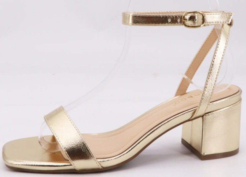 Step out in style with the Gia Gold Strappy Heel, featuring a chunky high heel perfect for dancing the night away. Its shimmering gold straps add a touch of glam while offering stable support, making it an ideal choice for any dressy occasion. Elevate your look with comfort and confidence!